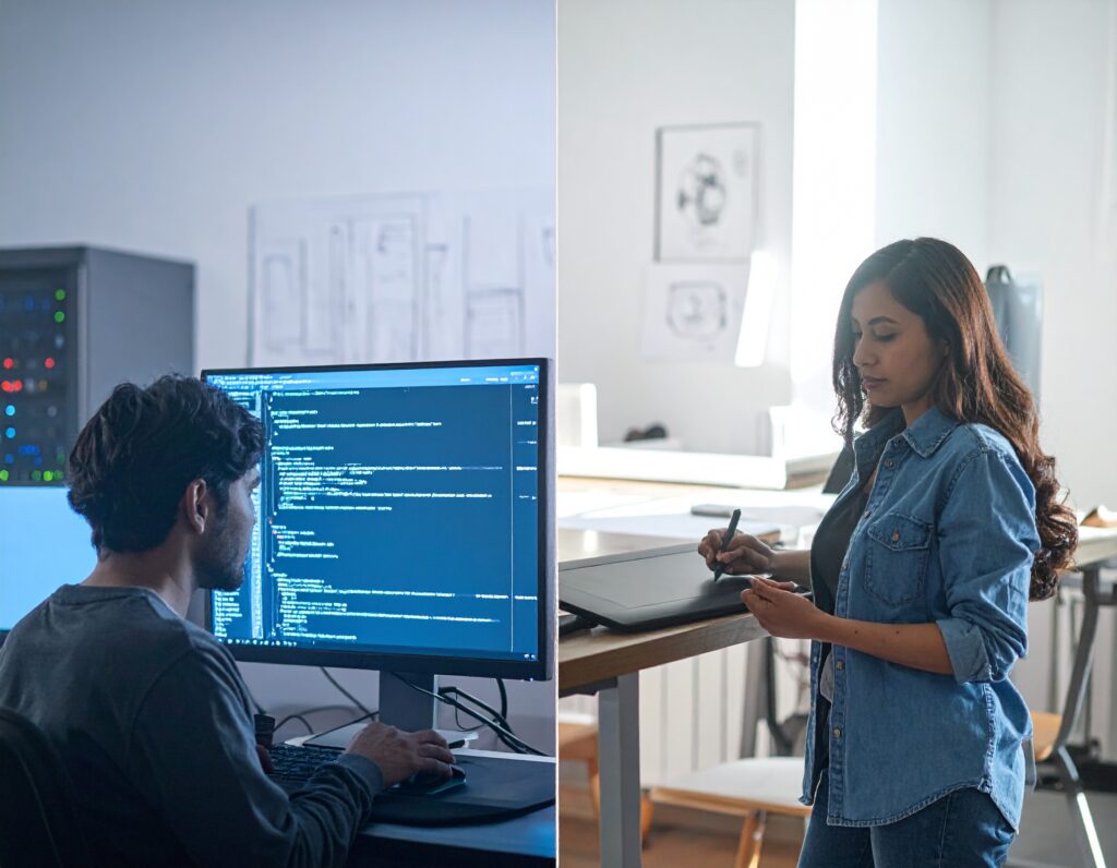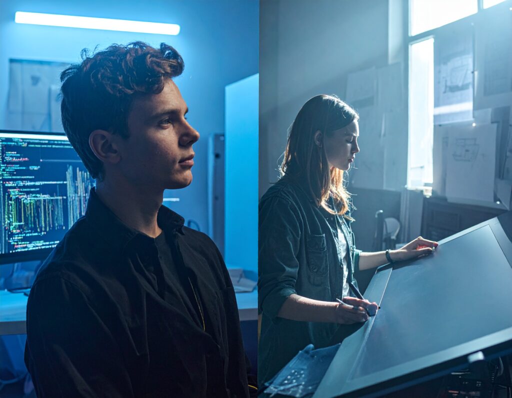 Combineer kunst met technologie om meeslepende visuele ervaringen te creëren. Studenten leren de fijne kneepjes van grafisch ontwerp, UI/UX en interactieve media. We dagen je uit om verhalen te vertellen die er echt toe doen en de visuele taal van de toekomst vorm te geven.